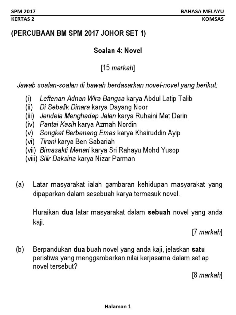 Contoh soalan novel bimasakti menari dan pantai kasih via .